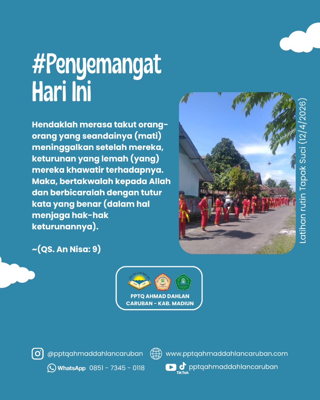 Sahabat Santri, tahun ini mari hadirkan kebahagiaan untuk para santri penghafal Al-Qur’an di PPTQ Ahmad Dahlan Caruban melalui program patungan qurban sapi. Dengan ikut patungan qurban, Sahabat ikut menghidupkan syiar ibadah qurban di lingkungan pesantren dan menambah amal jariyah penuh keberkahan untuk diri dan keluarga.✨ Allah berfirman: “Daging dan darah hewan qurban itu tidak akan […]